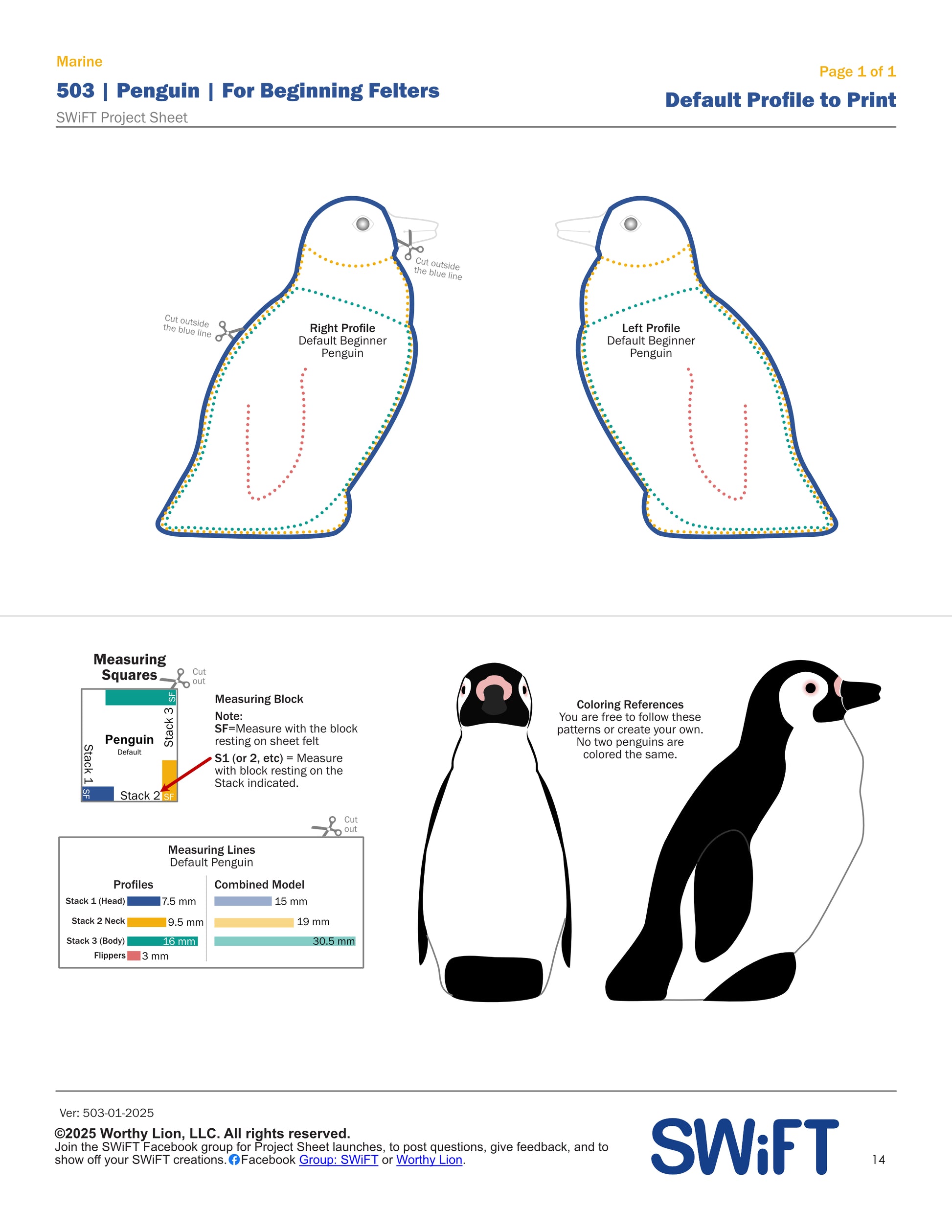 This project is a step-by-step tutorial that shows you how to use the SWiFT method to create a realistic penguin. It also includes how to add the color top-coat. This is the only SWiFT Project Sheet that includes coloring.